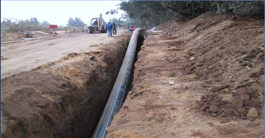 Instalación y fusión de 1800 mts de cañería de Polietileno DN 250mm.