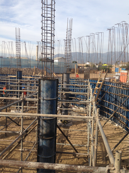 Estructura de andamios para colocación de moldajes y enfierraduras